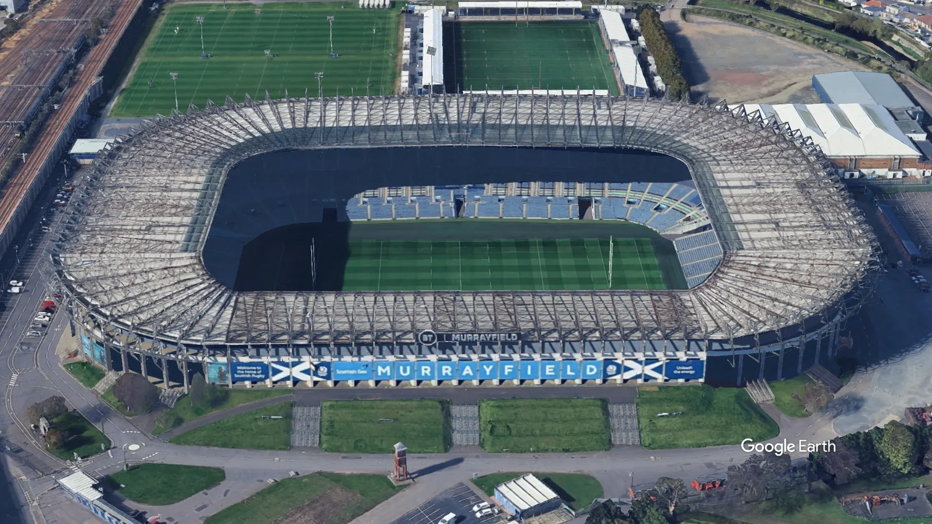 Scottish Gas Murrayfield is located at Roseburn Street, Edinburgh EH12 5PJ, in the Roseburn area of west Edinburgh. The stadium sits approximately 2 miles west of Edinburgh city center with excellent transport connections via tram, bus, and rail services.